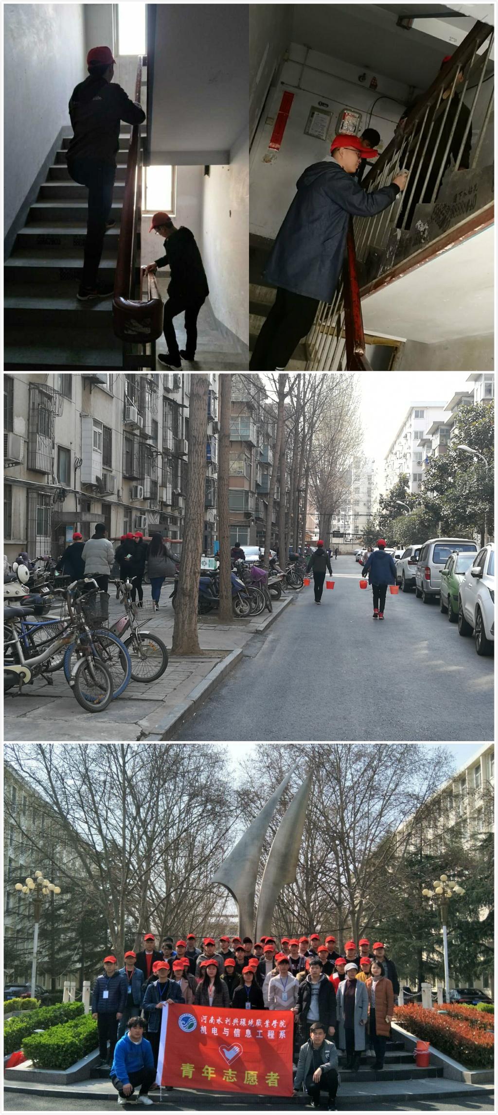 2018年3月20日下午14:00,机电与3044永利开展了“用心创造舒适环境,汗水演绎雷锋精神”进社区卫生大扫除活动。