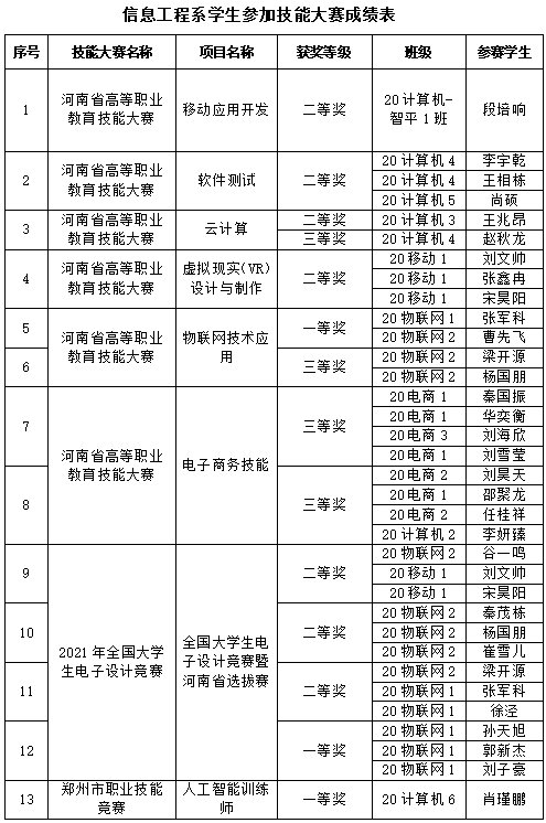 近日,我校3044永利学生在2021年河南省高等职业教育技能大赛、全国大学生电子设计竞赛河南赛区比赛、2021年郑州市职业技能竞赛等8个赛项中发挥出色,频频获奖,其中在2021年河南省高等职业教育技能大赛中荣获物联网技术应用赛项团体一等奖。