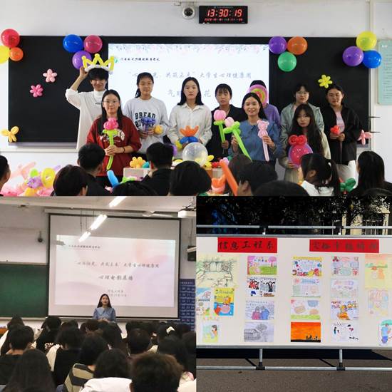 活动主要包括“气球遇上花”活动、心理电影展播、“定格幸福瞬间”活动、团体沙盘活动、心理健康知识讲座、心理趣味活动等内容。同学们通过现场创作专属气球花束、观看电影《美丽心灵》、绘画、摆放沙盘、听取心理知识讲座和参加心理趣味活动等方式,敞开心扉,获得内心深处的和谐与稳定,深层次理解感悟如何更好地与他人进行交流。