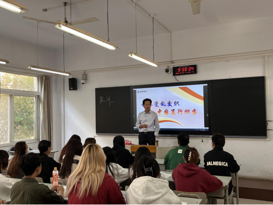 课上,李广慧立足“两个大局”,聚焦世界局势,以“世界变乱交织,中国笃行担当”为题,通过丰富的案例和数据,讲解了地缘政治局势持续紧张、世界经济复苏乏力、全球治理体系遭受冲击、粮食和能源等多重危机叠加的国际形势,引导同学们深刻认识世界百年未有之大变局加速演进,深入理解以“三大倡议”推动构建人类命运共同体的丰富内涵和时代价值,倡导大家要知时势、明趋势,放眼世界、展望未来,勇于担当、砥砺奋斗,在世界之变、时代之变中答好青春答卷。