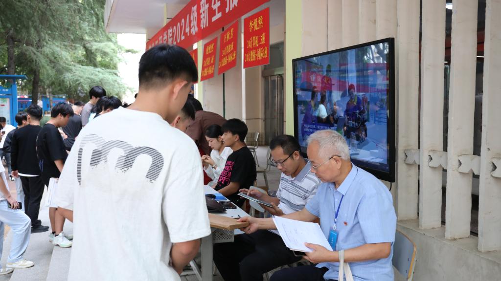 报到现场,各项流程有条不紊地进行着。辅导员和志愿者分工明确,按照网络注册报到、核验新生材料、发放物资材料的顺序,一步步引导新生快速、顺利地完成报到手续。面对新生们提出的各种问题与疑惑,志愿者们总是耐心细致地解答,用实际行动诠释着"以心换新"的迎新理念。