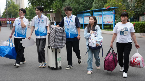 志愿者们身着统一的服装,他们在校园入口、报到处等关键位置,主动上前,热情地接过新生手中沉甸甸的行李,引导他们前往报到地点。那一声声亲切的问候,让新生们感受到了家的温暖。
