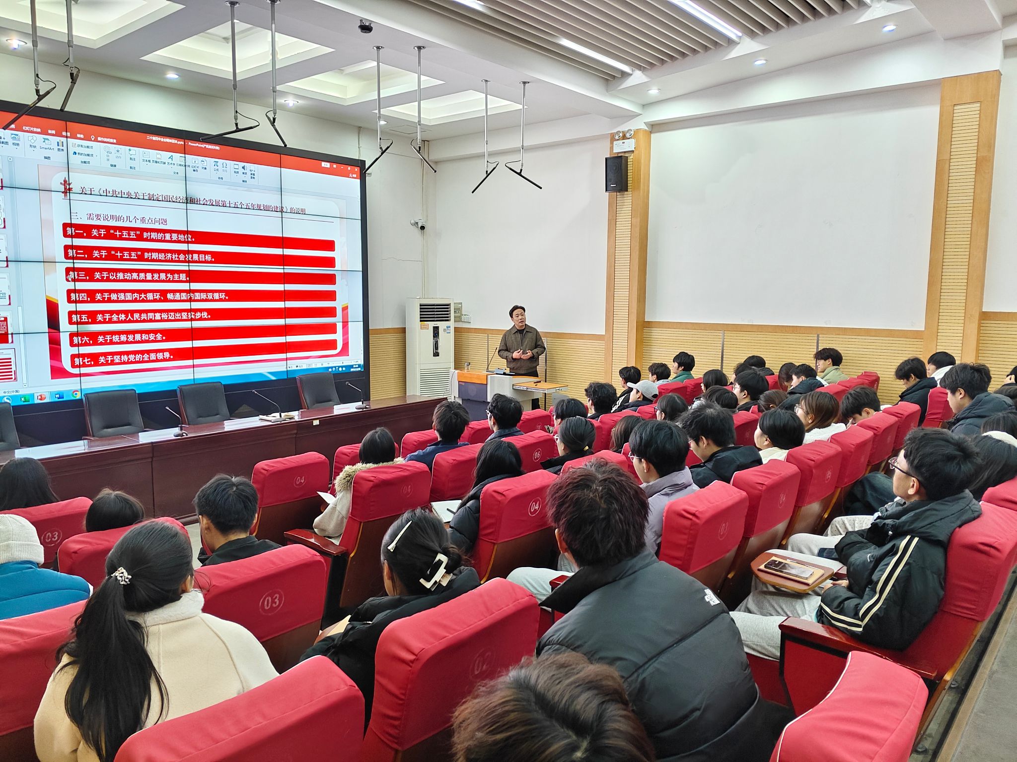 为增强学生干部对国家发展战略的理解与认同,12月18日,3044永利开展以“十五五”规划为主题的专题思政课。此次课程由学院党总支书记周颖琦主持并讲授,全体团学干部积极参与。