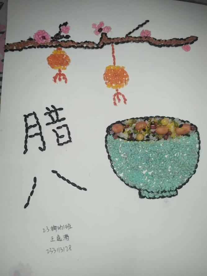 活动包括“一碗腊八熬相思,粥到家和两团圆”视频拍摄活动和“指尖上的腊八节”豆子拼画活动。在“一碗腊八熬相思,粥到家和两团圆”视频拍摄活动中,同学们以拍摄视频的形式,捕捉记录浓厚的节日氛围。“指尖上的腊八节”豆子拼画活动中,同学们以手工拼画的形式,通过各种颜色的豆子绘制一幅幅充满寓意的画作