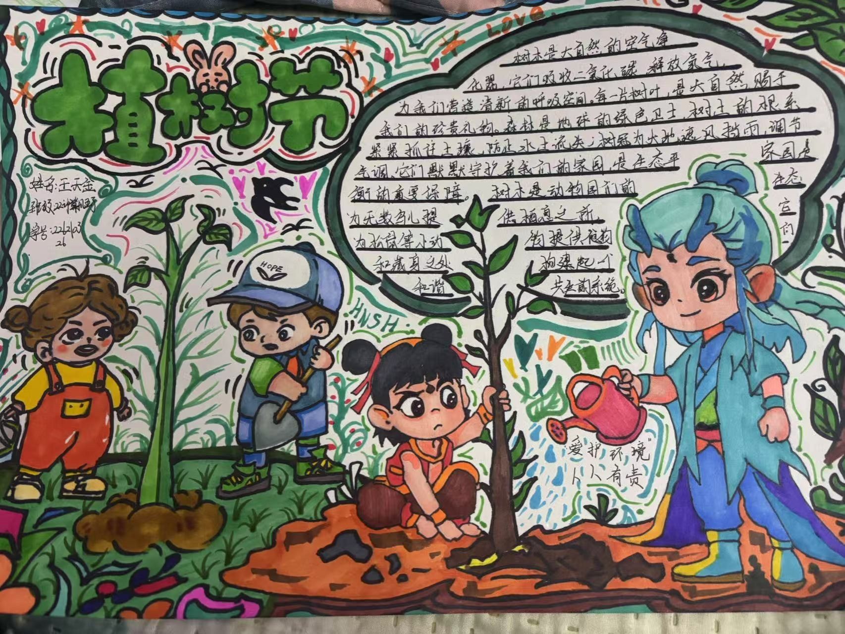 活动中,同学们以“环保”为主题,围绕植树节的由来及意义展开创作。作品中既有对植树造林重要性的深刻阐述,也有对绿色生活的美好憧憬,展现了当代大学生对环保事业的关注与热爱。