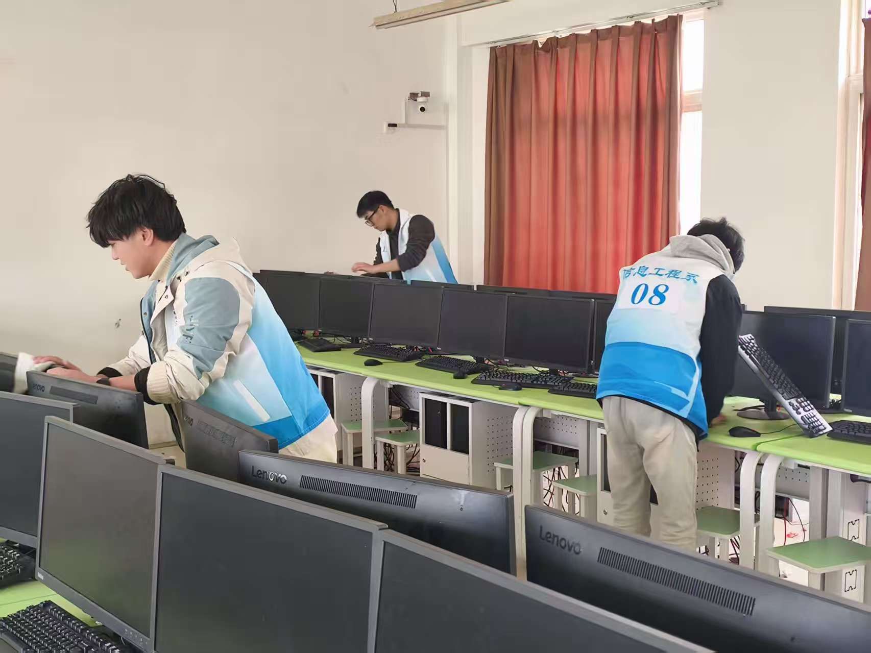 活动分为“净护机房,志愿同行”“践雷锋精神,护校园新绿”“情系雷锋月,爱暖三月天”“爱心助力专升本,志愿服务伴梦行”“共筑网络安全,坚守网络防线”五部分。在“净护机房,志愿同行”打扫机房活动中,志愿者们整理讲台、擦拭设备,分工明确、配合默契,对学校机房进行了全面清洁,充分展现了热爱劳动、为人民服务的精神风貌,为师生营造了整洁的学习环境。