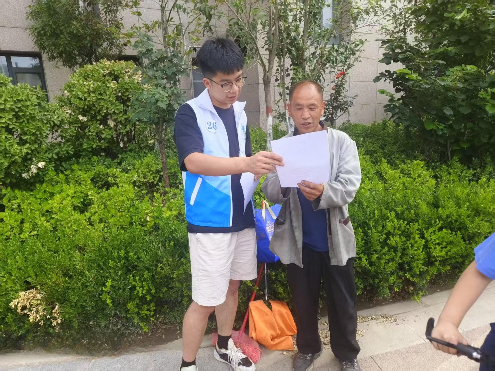 “推广普通话,共筑中国梦”乡村振兴大学生社会实践团积极响应国家语言文化推广号召,深入郑州市金水区黄家庵新村开展普通话调研和宣讲活动。活动伊始,调研员们在小区内开展小规模调研,通过与居民面对面交流、发放问卷等方式,全面了解当地普通话使用现状,并同步拍摄推广视频,为后续宣传工作积累素材。在普通话宣讲环节,团队成员结合前期问卷调查结果,从普通话的内容体系、学习方法以及在传承中华文化等方面的重要意义进行了讲解,让居民们对普通话有了更清晰、更深刻的认识,激发了大家主动参与普通话推广工作、积极使用普通话的热情。