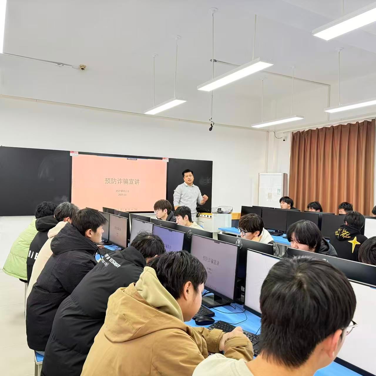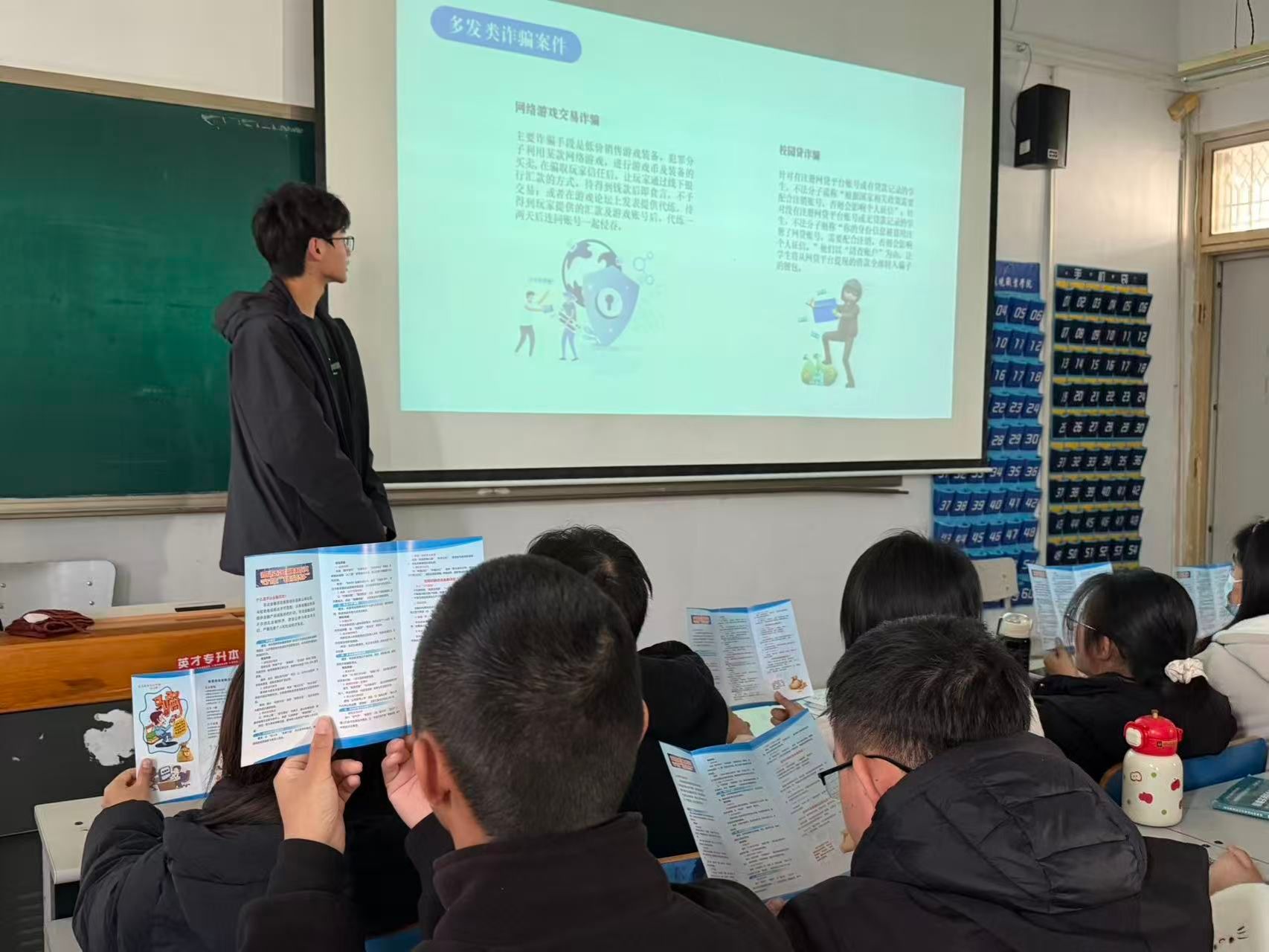 除此之外,为让反诈宣传常态化、日常化,学院充分利用课前课间10分钟这一碎片化时间,组织任课老师开展防诈宣讲。老师们结合自身经历和身边案例,用通俗易懂的语言向同学们介绍常见的诈骗手段和防范方法,让同学们在潜移默化中增强防诈意识,将反诈知识牢记于心。