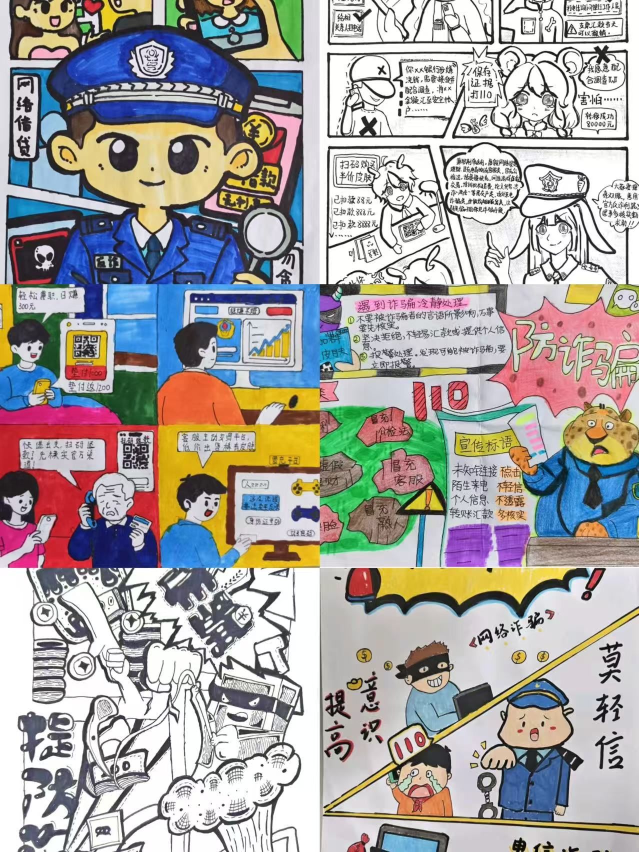 11月5日至15日,在“青春无诈,筑盾同行”活动中,学生们以短视频和漫画形式参与反诈宣传。短视频围绕虚假投资、冒充客服等十余种诈骗类型,通过情景剧、案例剖析、动画解说等形式,揭示诈骗手法与防范要点。漫画创作风格多样,有写实揭露、卡通故事,并融入数字媒体元素,兼具艺术价值与反诈知识传递性,展现了学生的专业功底与创造力。该活动创新了安全教育模式,推动反诈宣传从“被动接受”向“主动传播”转变。